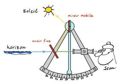 La latitude (parallèle) est peut être déduite de la position du soleil au-dessus de l'horizon, mesurée avec un sextant.