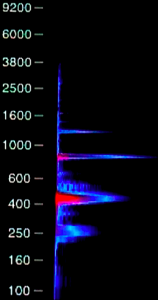 Le son fondamental (400 Hz) est le plus intense. Le son est très riche en harmoniques: ce sont des vibrations dont la fréquence est un multiple de la fréquence fondamentale. Les autres fréquences s’appellent des partiels.