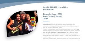 Jean Duperrex et son joyeux équipage nous emmènent dans un voyage imaginaire et musical autour du Monde... sans quitter notre fauteuil.
