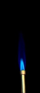 La flamme bleue, c’est le lieu de la réaction chimique de combustion: le combustible passe à l’état gazeux et réagit avec le dioxygène de l’air. La température atteint 1200°C et la couleur bleue est due au phénomène de chimiluminescence.