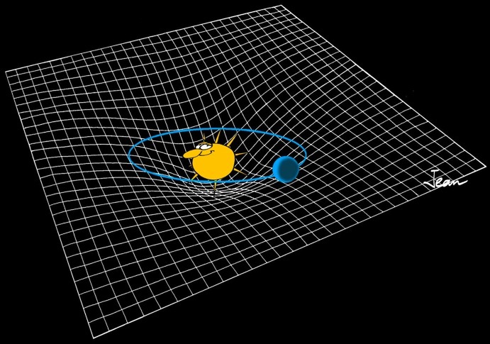 Au début du XXᵉ siècle, Albert Einstein a révolutionné notre compréhension de la gravitation. Il a décrit la gravitation non plus comme une force, mais comme une déformation, une courbure de l’espace-temps causée par les masses. Selon sa théorie de la relativité générale (1915), les objets massifs, comme les étoiles et les planètes, créent des «creux» dans l’espace-temps, et les autres objets suivent ces déformations. Par exemple, la Terre suit l’orbite «courbée» par la masse du Soleil.