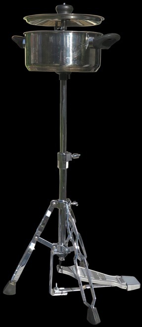 Les cymbales sont remplacées par une casserole et son couvercle.