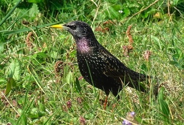 L’étourneau sansonnet (Sturnus vulgaris) a un régime omnivore: insectes, fruits, invertébrés (escargots). Son bec pointu lui permet de fouiller le sol à la recherche de larves d’insectes.
