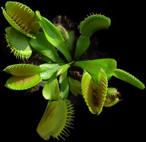 Les feuilles de la dionée forment à l’extrémité une sorte de mâchoire qui se referme sur l’insecte visiteur.