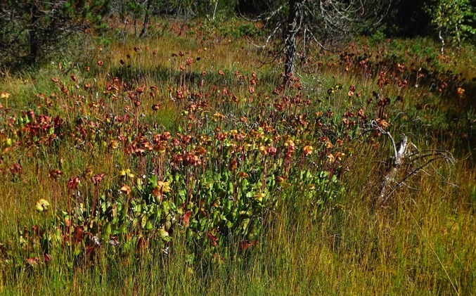 La tourbière des Ténasses avec des fleurs de Sarracenia